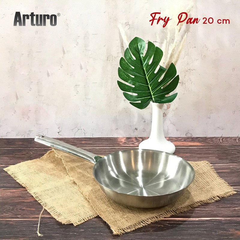 Panci Penggorengan - Frypan - Fry Pan ArturoA frying pan, frypan, or skillet is a flat-bottomed pan used for frying, searing, and browning foods. It is typically 20 to 30 cm in diameter with relatively low sides that flare outwards, a long handle, and no lid. Larger pans may have a small grab handle opposite the main handle.Beautifully designed, the three-layer metal cookware features an interior and exterior layer of premium-grade 18/10 stainless steel with a multi-element alloy aluminum core (along the bottom and up the sides) for fast, even heating and thorough heat distribution.===========================================================================================*BARANG PECAH BELAH**WAJIB PACKING KAYU untuk pengiriman selain pengiriman Sameday / Instant.***PACKING KAYU : https://shopee.co.id/product/286146875/5463590907/**BUBBLE WRAP : https://shopee.co.id/product/286146875/4357077211/MOHON BACA KEBIJAKAN PENGIRIMAN & PENGEMBALIAN PRODUK DI CATATAN TOKO1. Tanyakan ketersediaan stok sebelum membeli.2. Tidak menerima retur karena kesalahan dalam pemilihan ukuran / model karena sudah dijelaskan di deskripsi produk.3. Sampaikan komplain dengan menyertakan video unboxing/video pembukaan paket ketika barang diterima melalui chat kami. Kami TIDAK melayani komplain kerusakan di riview atau diskusi produk. Komplain kerusakan hanya via inbox/resolusi. Jika melakukan Komplain di review dan sudah memberi rating jelek = TIDAK AKAN KAMI LAYANI============================================================================================4. KETENTUAN KHUSUS UNTUK BARANG PECAH BELAH* Kami Menyarankan penambahan Packing Kayu & Wajib Asuransi. Kami tidak bertanggung jawab atas kerugian/jika barang yang diterima rusak karena kami selalu memastikan barang dalam keadaan baik sebelum dikirim.*Biaya ASURANSI / Biaya PACKING KAYU disesuaikan dengan ketentuan pihak ekspedisi.============================================================================================5. Pengiriman Senin- Jumat Maksimal Jam 16.00 WIBKhusus Untuk OJOl Maksimal Jam 14.00 WIBSetelah Jam Tersebut dan pesanan di hari sabtu dan minggu akan di kirimkan di hari Kerja Berikutnya.============================================================================================Spesifikasi :Tebal 1.1 cmNo BautLaser TechnologyHotel gradePanci Heavy