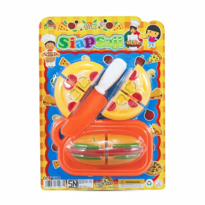 Mainan Masakan yang banyak digemari anak perempuan sebagai mainan koleksinya dirumah. Mainan ini terdiri dari :1 Talenan mainan1 Pisau mainan1 Pizza mainan1 Hot dog mainanUkurannya yang mini pas genggaman tangan anak sehingga menambah keseruan si kecil bermain bersama temannya maupun sendirian. Tersebuat dari bahan plastic aman dan cocok untuk anak usia 3 tahun keatasSudah bersertifikat SNI sehingga aman dimainkan anak-anakDan cocok juga untuk dijadikan sebagai hadiah/kado.--------------INFORMASI-PENTING--------------* Diwajibkan membeli Bubble Bisa Di search Di Etalase kita ketik : bubble Wrap* Barang Rusak Di garansi 100% jika membeli BUBBLE WRAP yang sudah kami sediakan dan Pastikan sebelum membuka paketan kiriman kami di videoin unboxing nya, tanpa video unmboxing dan tidak membeli bubble wrap tidak menerima komplainan thanks.* Jika Terdapat Kekurangan barang, Silakan foto Label Pengiriman yang kami tem
