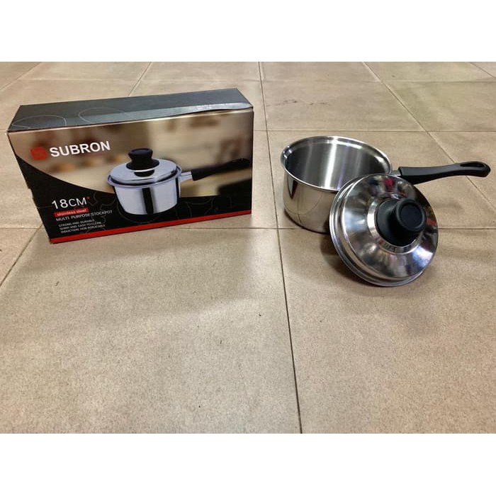 Masak makanan kesukaan kamu dengan panci stainless steel dari Subron! Mudah digunakan, dibersihkan, dan juga tahan lama.Diameter dalam