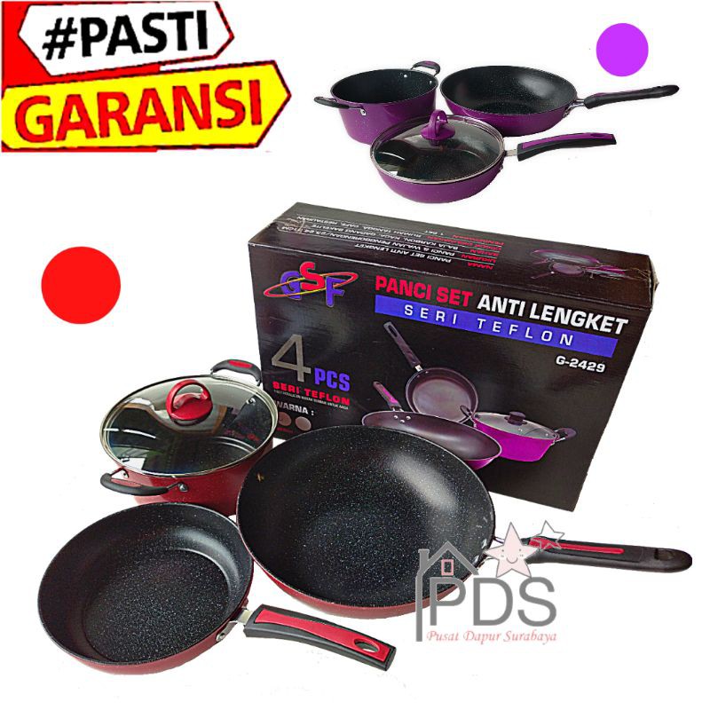 Flash Sale Perlengkapan di Kabupaten Klaten Panci Set Serbaguna 4 Pcs Gsf G 2429 Wajan Anti Lengket Teflon Penggorengan dari Pusat Dapur Surabaya Kota Surabaya