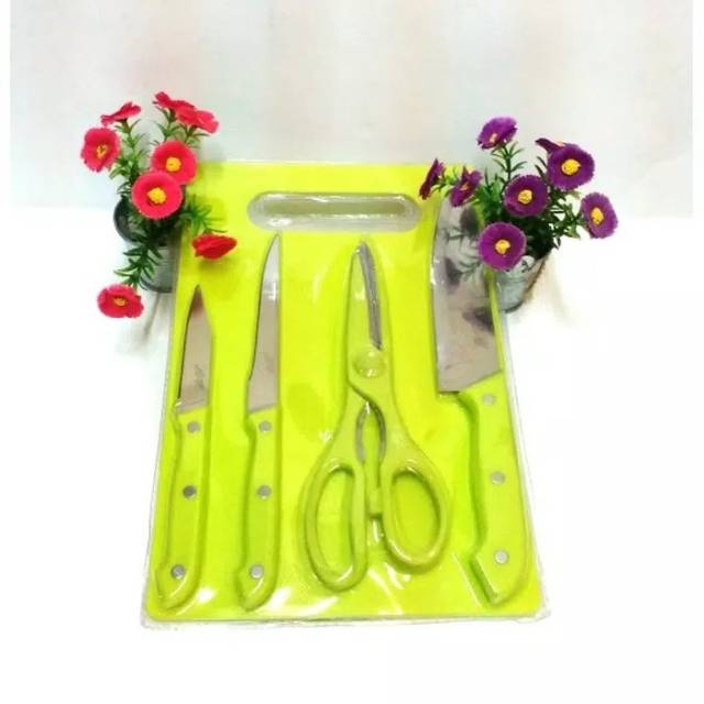 Grosir Perlengkapan di Kabupaten Tabanan Telenan Paket Pisau Dapur 5 Pcs Knives Set Roti.talenan Daging.gunting Sayur Makanan Cutting Board dari Tidak Ada Merek Kota Surabaya