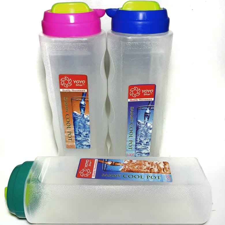 Bahan PP / Food GradeKapasitas1.2 LiterWarna menarik / Di kirim RandomUntuk menyimpan air di kulkasCool pot terbaru menggunakan plastikBPA free, cocok dipakai untuk air dinginBiasa dan cocok digunakan untuk dimasukkan ke dalam kulkas, baik untuk diisi air dingin maupun ice syrup.Praktis dan Tidak Mudah TumpahTutup bisa di