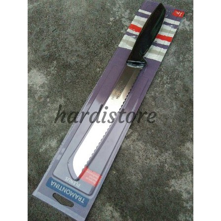 Pisau Roti Bread Knife Tramontina Plenus 8"Fungsi: pisau untuk iris dan potong rotiSpesifikasi:- Made in Tramontina Brazil- Kode Produk: 23422/108- Stainless Steel Blade, anti karat, panjang bilah 8 inci/20 cm- Polypropylene Handle, panjang 13 cm- Dishwasher Safe, aman dicuci dengan mesin pencuciCara Penggunaan:1. Sebelum dipakai, cuci dan keringkan.2. Krn termasuk benda tajam maka pegang dg hati2 dan jauhkan dari jangkauan anak.3. Supaya Awet, cuci bersih dan keringkan sebelum disi