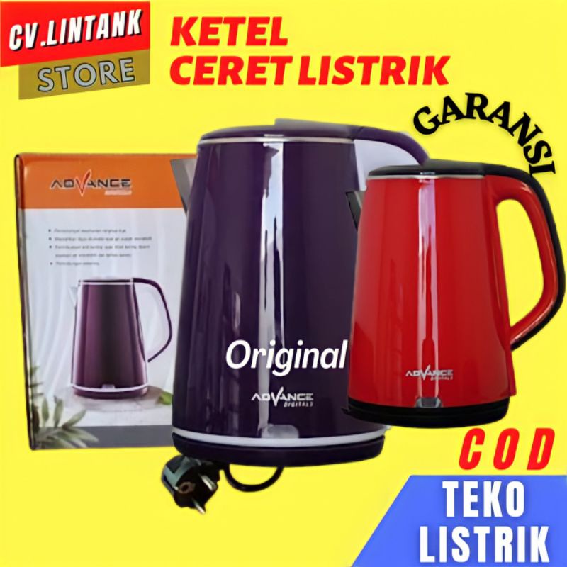 TEKO LISTRIK KETEL LOW WATT CERET PEMANAS AIR ADVANCE AK-182 Poci Elektrik Stainless Hemat Listrik.Deskripsi Teko listrik kettel electric teko masak air advance AK182 ukuran 2LAdvance Ak 182Daya 500 watt AC220V 50HzKapasitas 2LiterBahan stainlessBerputarKabel GulungAdvance Electric Kettle 2liter adalah perpaduan sempurna antara desain yang elegan dan fungsi yang maksimal. Dengan bagian dasar yang terbuat dari stainless steel membuat ketel ini menjadi lebih tahan lama dan mudah digunakan. Advance Ketel Elektrik yang membutuhkan daya Watt ini dilengkapi dengan lampu indikator transparan dan tombol on/off. Dengan daya sebesar ini memasak air menjadi lebih cepat. sehingga dapat menghemat waktu dan listrik.Stainless SteelDengan material yang terbuat dari stainless steel yang berkualitas. ketel ini awet dan tidak mudah rusak. selain itu tahan panas.Kapasitas BesarAdvance Ketel Elektrik ini berkapasitas 2liter membuat Anda tidak perlu berkali-kali merebus air untuk menyeduh teh atau kopi. ataupun menyiapkan minuman ataupun makanan yang membutuhkan air panas.FiturBuka / tutup menggunakan tombol. sistem proteksi ganda yaitu otomatis OFF (mati) jika air sudah mendidih atau tanpa air. penempatan pada alas derajat. elemen pemanas tersembunyi. penyimpanan kabel yang praktis (kabel bisa digulung pada bagian bawah / alas ketel.PerawatanUntuk membersihkan ketel agar lebih bersih. isi dengan air cuka lalu rebus selama hingga menit. Untuk pembersihan bodi luar. gunakan lap basah. Kosongi dan bersihkan setelah kali pemakaian untuk merebus air. Selalu cabut steker kabel listrik dari stop kontak bila tidak terp