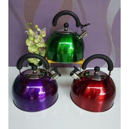 WARNA YANG DIKIRIMKAN RANDOM SESUAI DENGAN STOK YANG ADATeko Siul Stainliess Tri JTersedia : 4 Liter dan 5 LiterTeknologi terbaru digunakan dalam pembuatan alat masak seperti kettle/teko ini, dengan desain elegan berbahan stainless dan penuh rna menjadikan kettle ini tampil beda dengan produk lain.Selain desain yang cantik keunggulan teko ini akan memberikan tanda ketika air mendidih dengan suara siul seperti peluit dibagian tutupnya.Disertai handle teko anti panas dan tutup teko serta di bagian out put teko terdapat alat deteksi uap mendidih dan akan berbunyiSpesifikasi Produk :- Material stainless steel re- Dimensi volume kettle 4L & 5L- Pegangan kettle terdapat anti panas- Terdapat alat untuk deteksi air saat mendidih dan mengeluarkan bunyi- teko bunyi ketika air matang- bahan bukan aluminium biasa tetapi oxide aluminium yang keras dan lebih tahan goresan (bukan lapisan coating)Kettle anodized ini merupakan teknologi dari Jepang yang banyak digunakan dalam pembuatan alat-alat masak- tidak lengket- tahan terhadap goresan- tidak karatan- tahan terhadap asam dan garam- mudah dibersihkan- warna kettle tetap cemerlang- hemat energy karena cepat panas- tidak beracun- HigienisDimensi Kemasan : 22x22