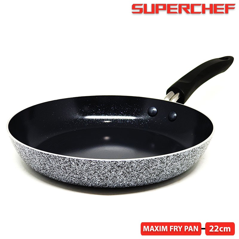 Apa itu Alat Masak bahan Keramik?Peralatan Masak yang terbuat dari bahan Keramik sangat BAIK dan CEPAT untuk menghantarkan panas, masakan cepat matang dengan merata, HEMAT minyak, ANTI LENGKET , tahan dipakai jangka lama dan membuat masakan lebih baik untuk KESEHATAN.Alat Masak Keramik biasanya memiliki CIRI KHAS warna hitam dan bintik-bintik seperti bintang di langit mala pada seluruh lapisannya permukaannyaDengan paduan warna hitam dan bintik kecil pada alat masak ini membuat tampilannya lebih elegant, mewah dan cantik.Alat Masak Marble kami memiliki Plat Stainless dibawahnya, sehingga hanya dapat digunakan untuk KOMPOR GAS.Alat Masak ini BISA digunakan untuk memasak TANPA MINYAK dan dengan spatula BESI / STAINLESS yang tidak tajam ujungnya.Alat Masak Marble kami menggunakan 3 lapisan keramik, sudah SNI, bahan baku FOOD GRADE dan TIDAK mengandung bahan PFOA, PTFE sehingga aman dipakai dan baik untuk kesehatan.MAXIM FRY PAN 22cmTinggi / Kedalama