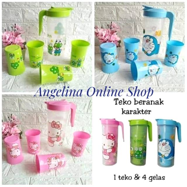 Teko Set Gelas Plastik Karakter 5 In 1Harga diatas harga 1 set ( 1 teko n 4 gelas )Bahan : PlastikAda 3 Warna : - Pink Hello kitty- Biru Doraemon- Hijau Kero-KeropiUkuran Teko -/+24 cm x 14 cmUkuran Gelas -/+ d8 tinggi 12 cmKami kirim dalam kondisi baik bila ada kerusakan dalam pengiriman exspedisi silakan komplen ke exspedisi ter