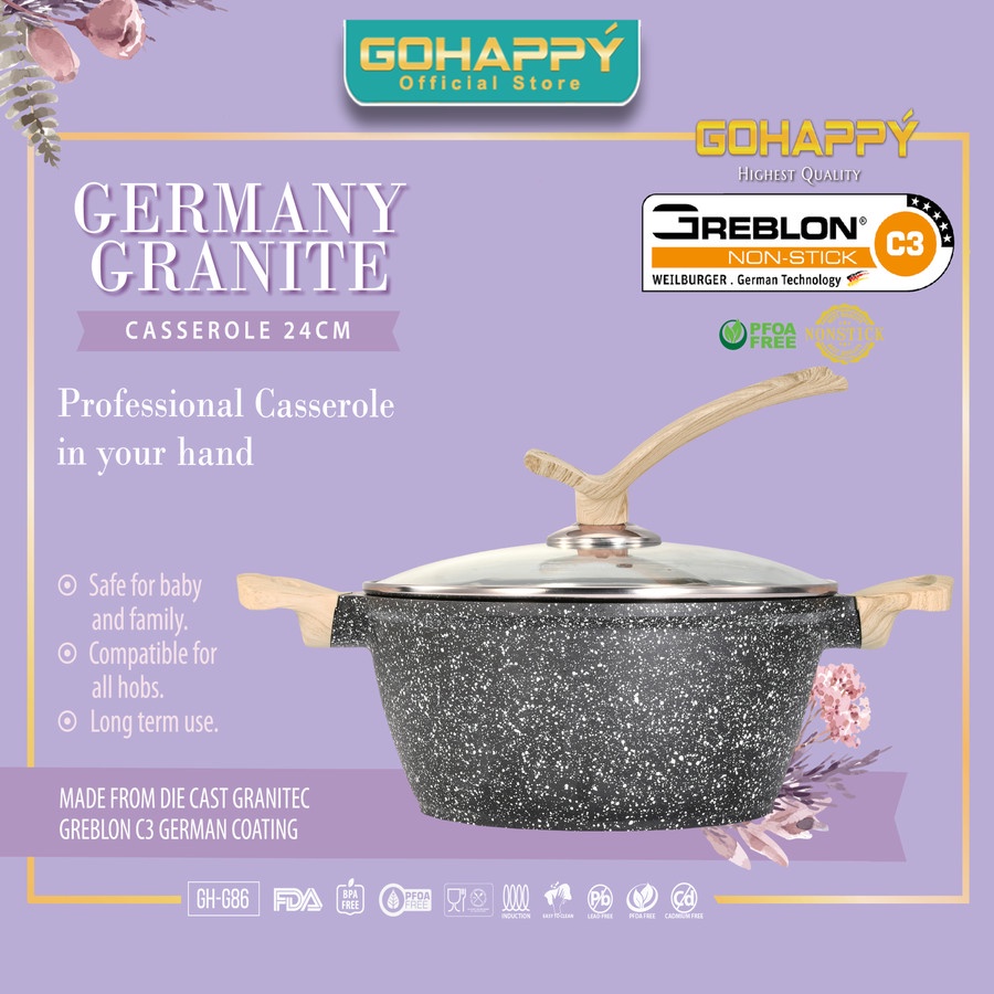Name: Casserole 24cm Germany Granite Gh-g86 Panci Stock Pot Pfoa Free Aman Sehat Gohappy German Greblon C3
