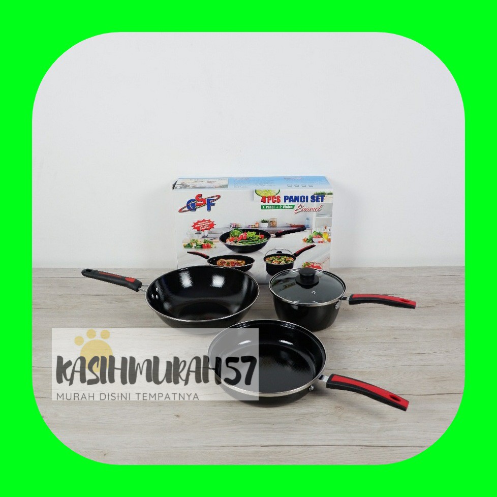 Diskon Perlengkapan di Kabupaten Cilacap Panci Wajan Penggorengan Set Enamel Anti Lengket 4pcs Gsf G 2630 / G2630 / G-2630 dari Tidak ada merek Kota Surabaya