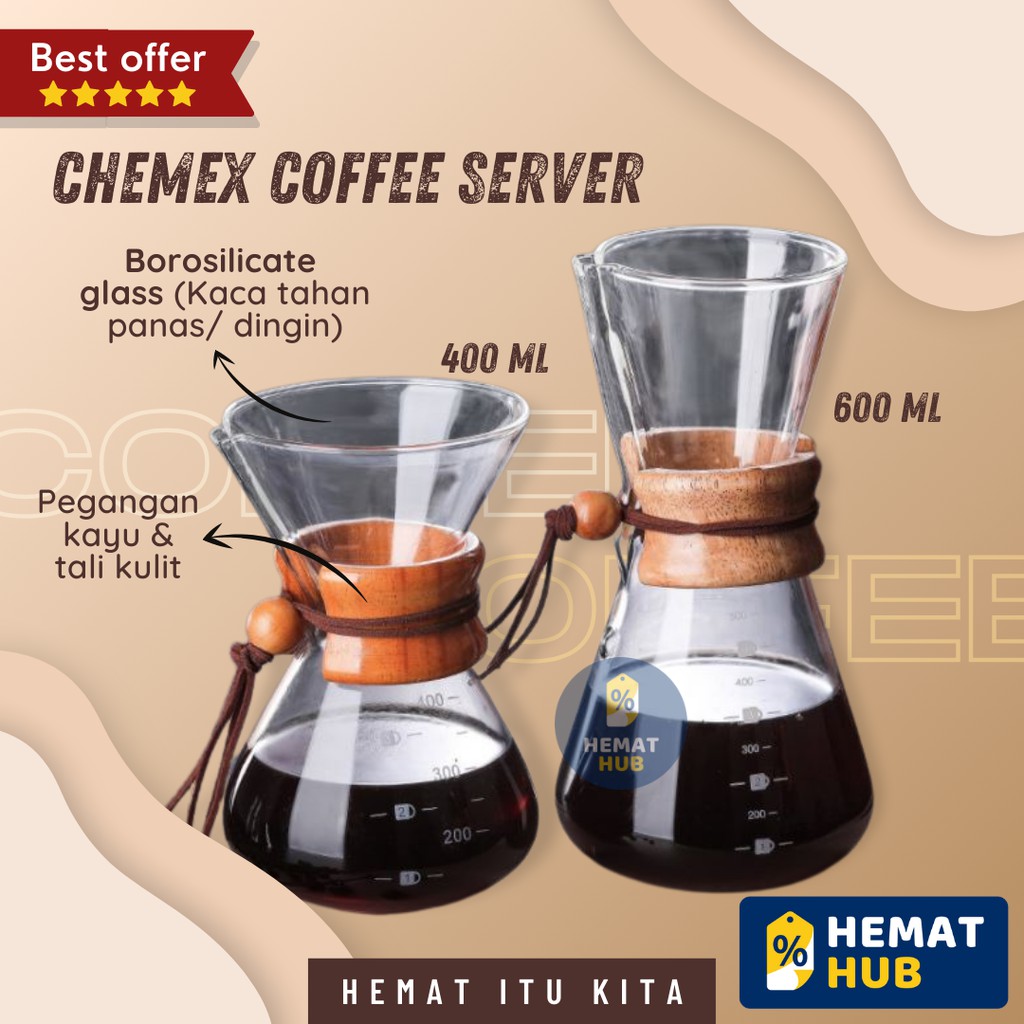 Termurah Perlengkapan di Kabupaten Klungkung Chemex Coffee Server Kaca Dripper Pot Woodneck Pour Over Drip Kopi Manual Brew Teko V60 dari Hemathub Official Store Kota Jakarta Barat
