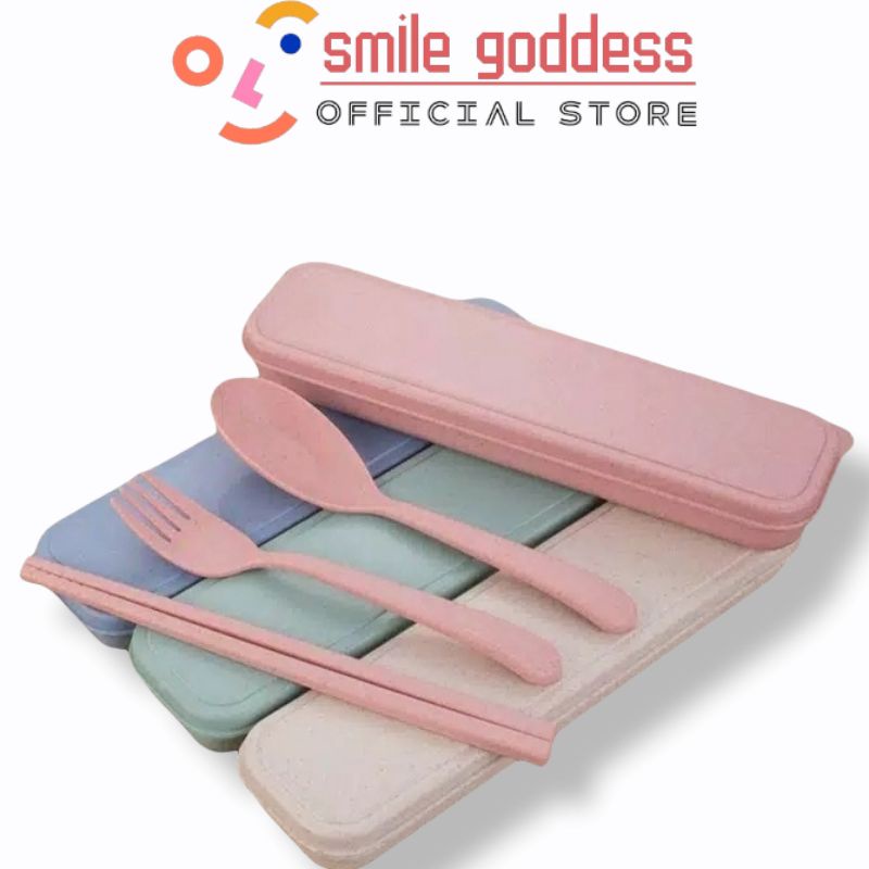 Sale Perlengkapan di Kota Surabaya ❤smile Goddess❤1set Alat Makan + Kotak Wadah J-01 Model Serat Gandum dari Smile Goddess Kota Jakarta Utara